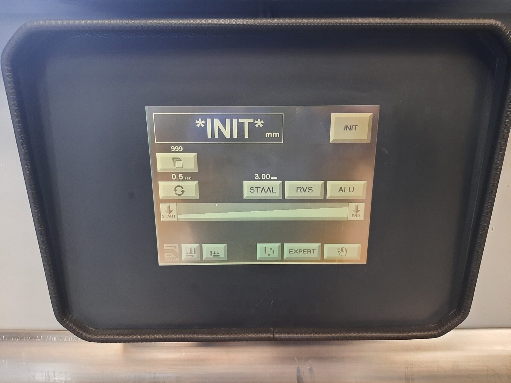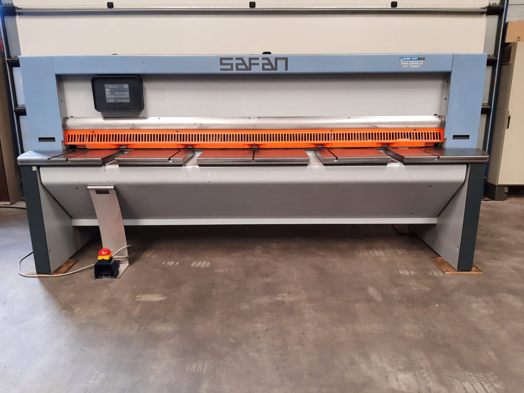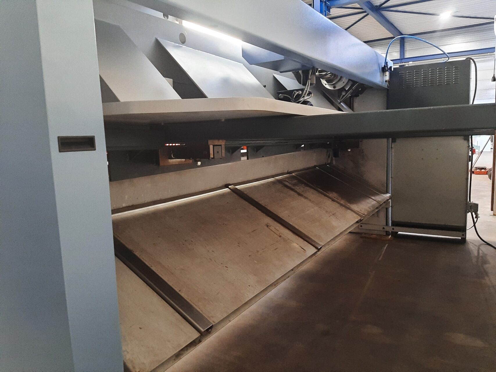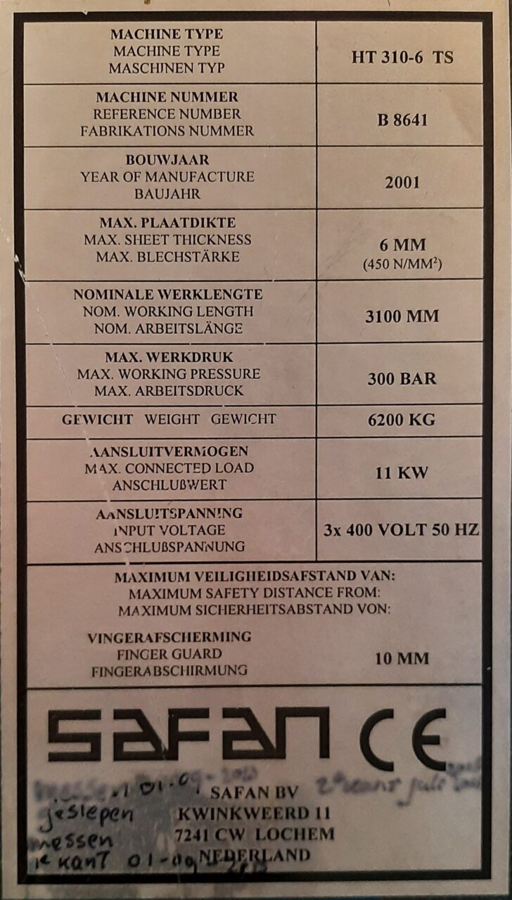 Touchscreen CNC angle, bladegap, backgauge adjustment, sheetsupport, safetyguard.